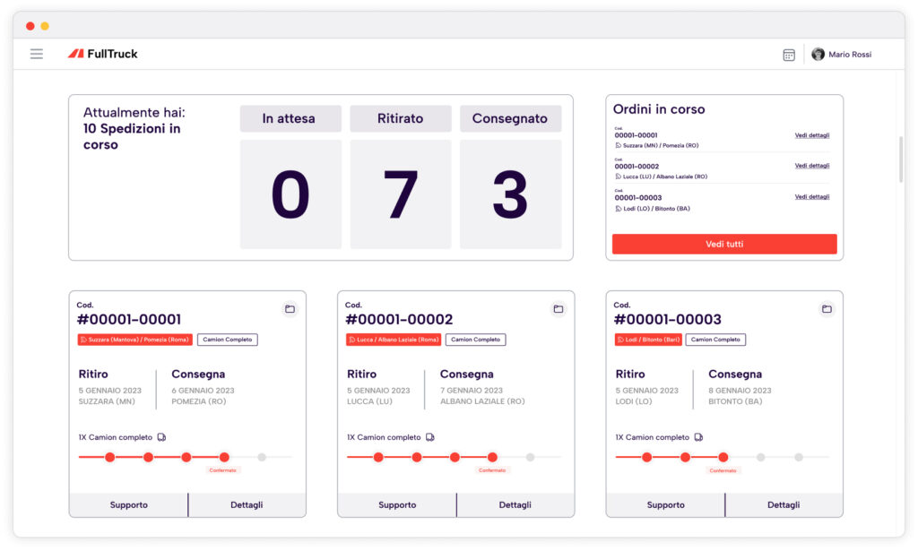 FullTruck combina l'affidabilità degli autotrasportatori, la flessibilità degli spedizionieri e i vantaggi unici che solo una rete di trasporto merci digitale può offrire. Definendo le linee da effettuare vengono automatizzate le fasi di accettazione dei carichi grazie ai servizi unici di primario e backup garantito ed alla grande rete fidelizzata di autotrasportatori. l’effetto network generato aiuta le aziende a risparmiare sui costi di trasporto e raggiungere gli obiettivi di sostenibilità grazie al risparmio dei km a vuoto degli autotrasportatori.